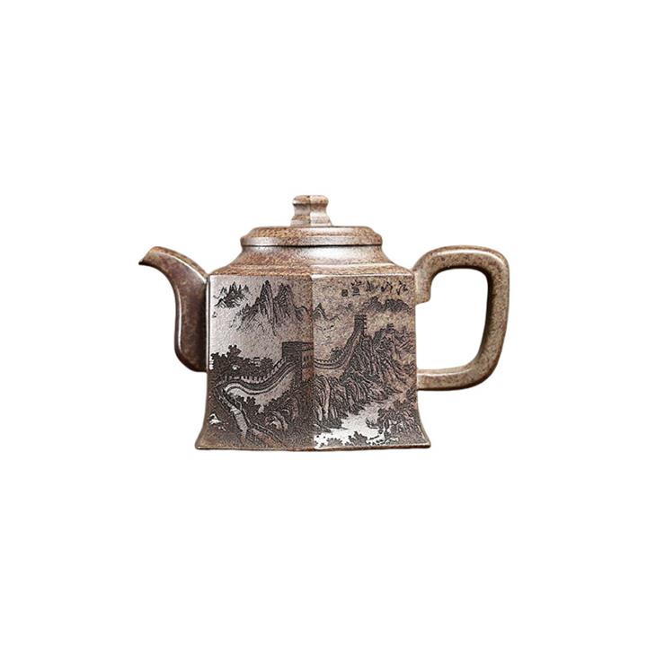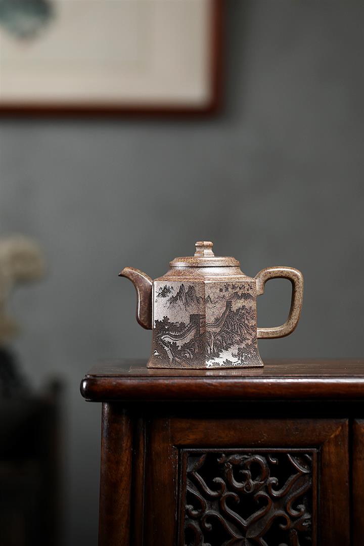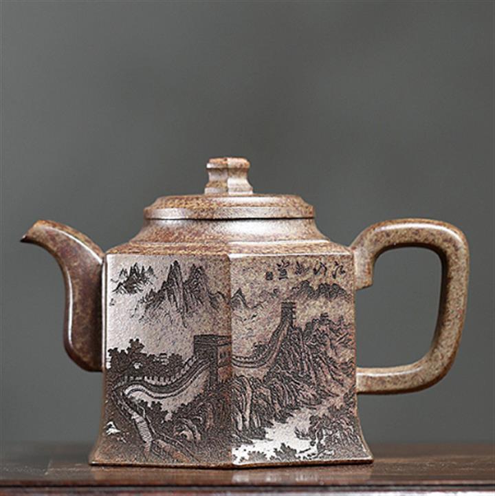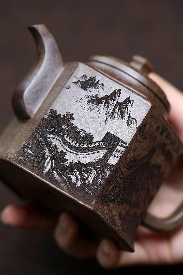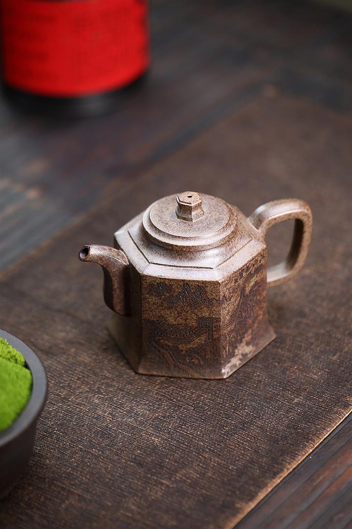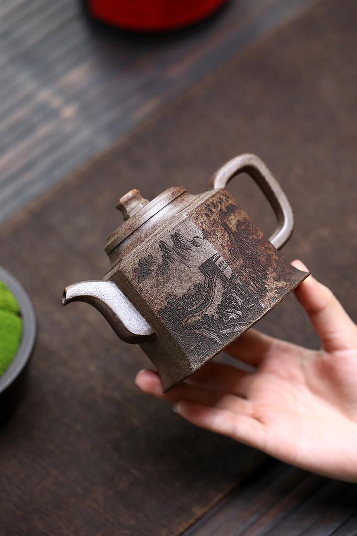 400cc原礦綠泥滿刻江山如畫壺POT7982