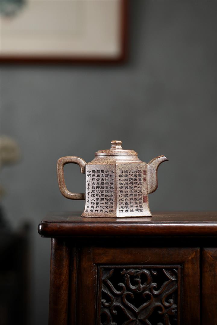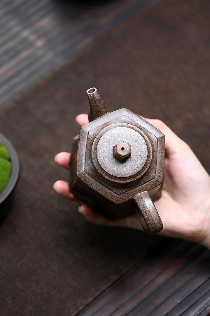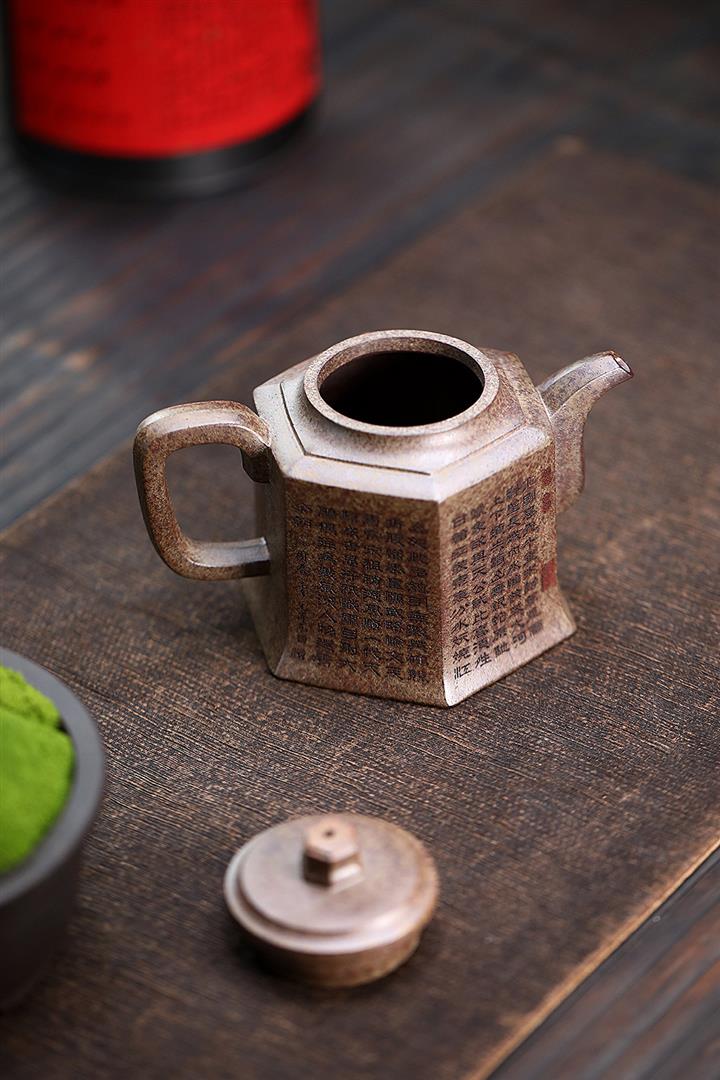 280cc原礦雲霧沈香泥六方金鐘泡茶壺POT9842