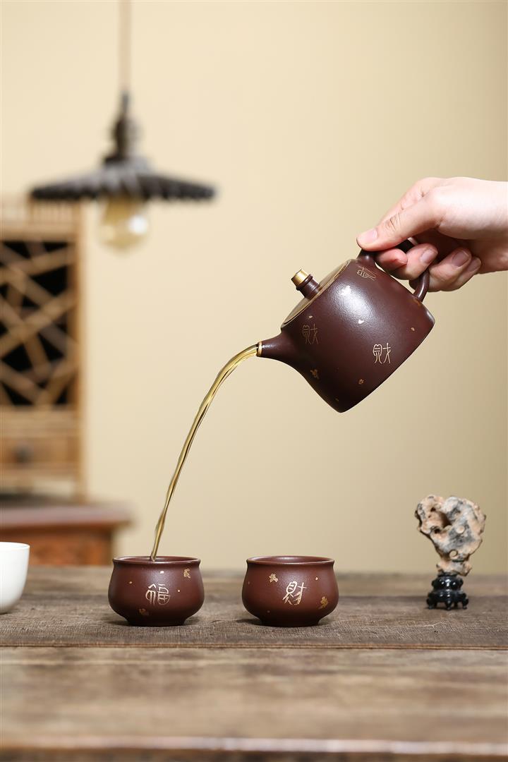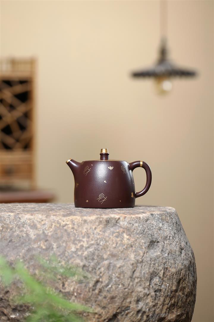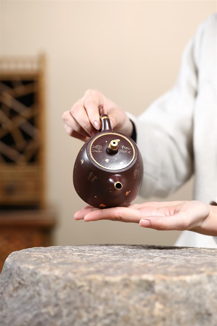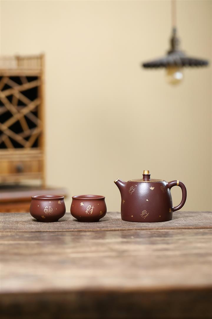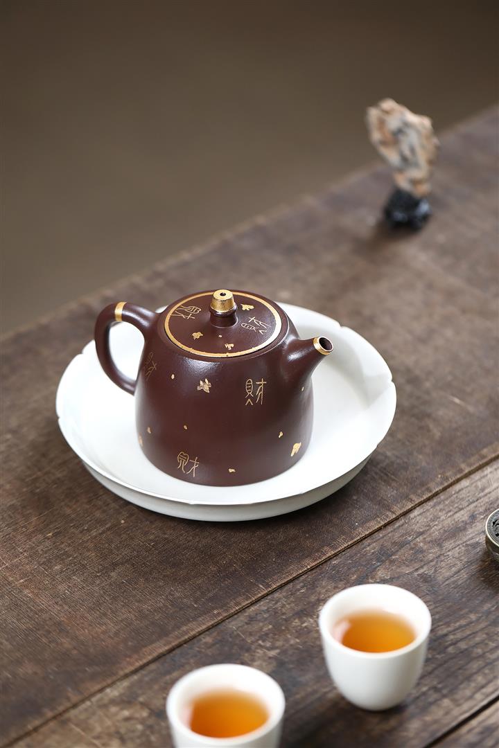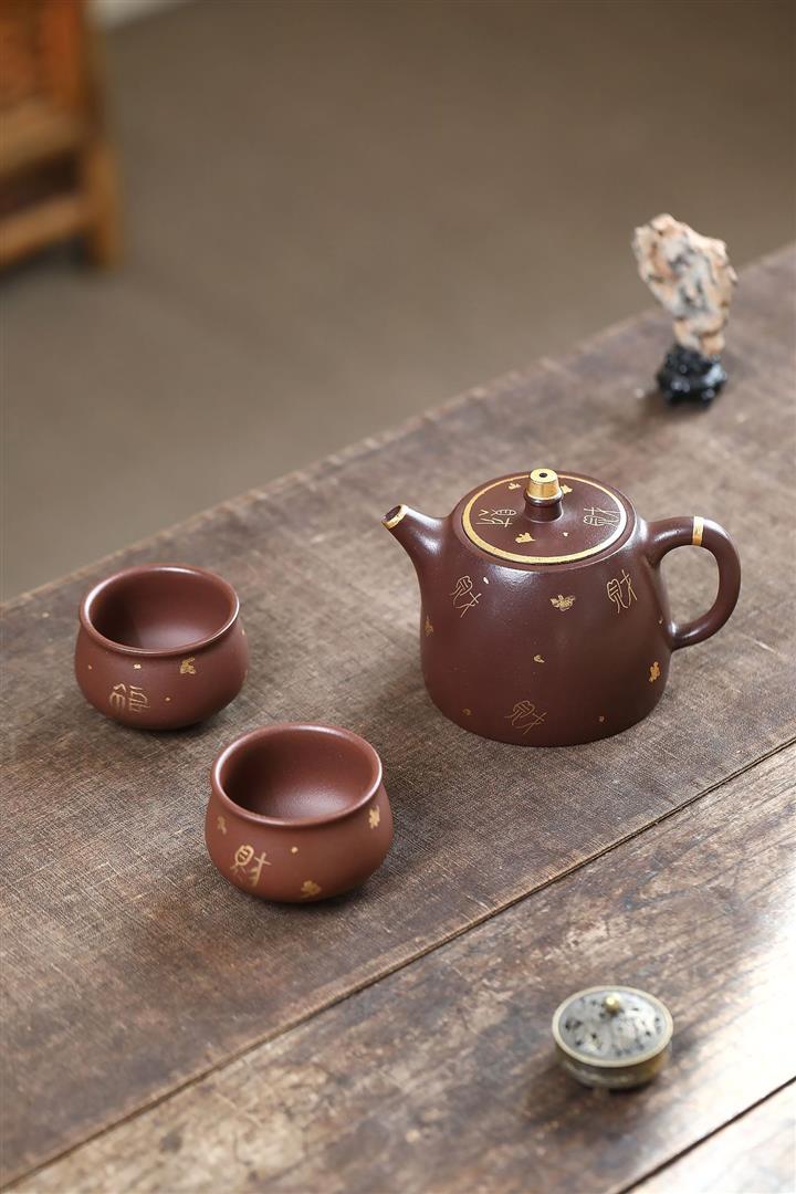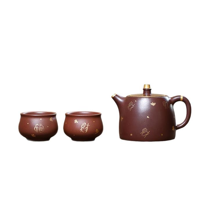 260cc原礦紫泥壹壺兩杯描金漢鐸套組泡茶壺POT9845
