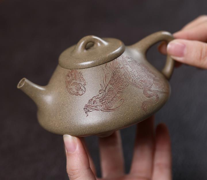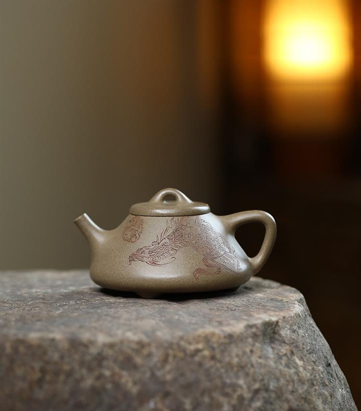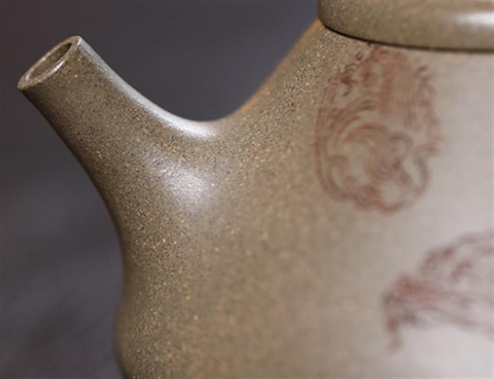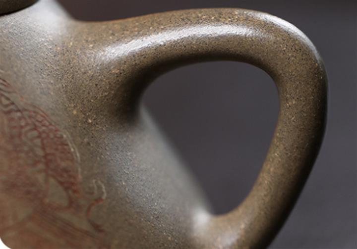 【作品介紹】此款壺形線條流暢,壺把,壺嘴,壺身壹氣呵成栩栩如生,是收藏把玩的好壺,泥料色澤古樸典雅,日久使用,漸露鋒芒,養成變化快,溫潤莊重,用其泡茶,使用的年代久,壺身就溫潤,泡出來的茶湯也就醇郁芳馨。