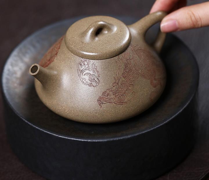 340cc龍骨金砂高溫柴燒百福提梁遇水變色泡茶壺POT9630