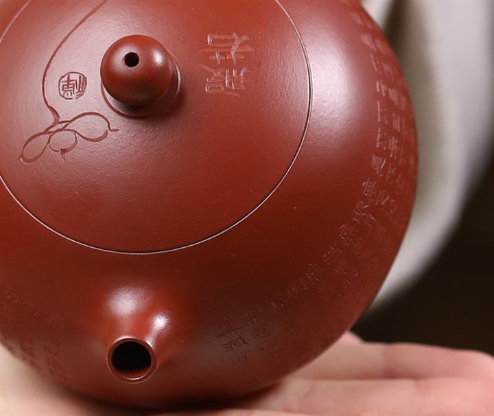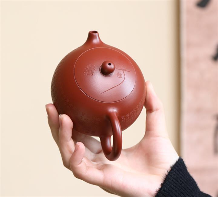 棗紅泥觀山漢瓦紫砂壺POT5884