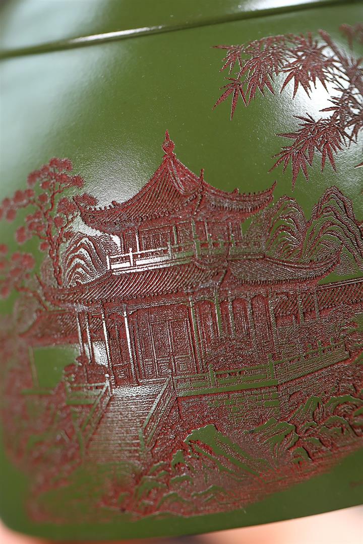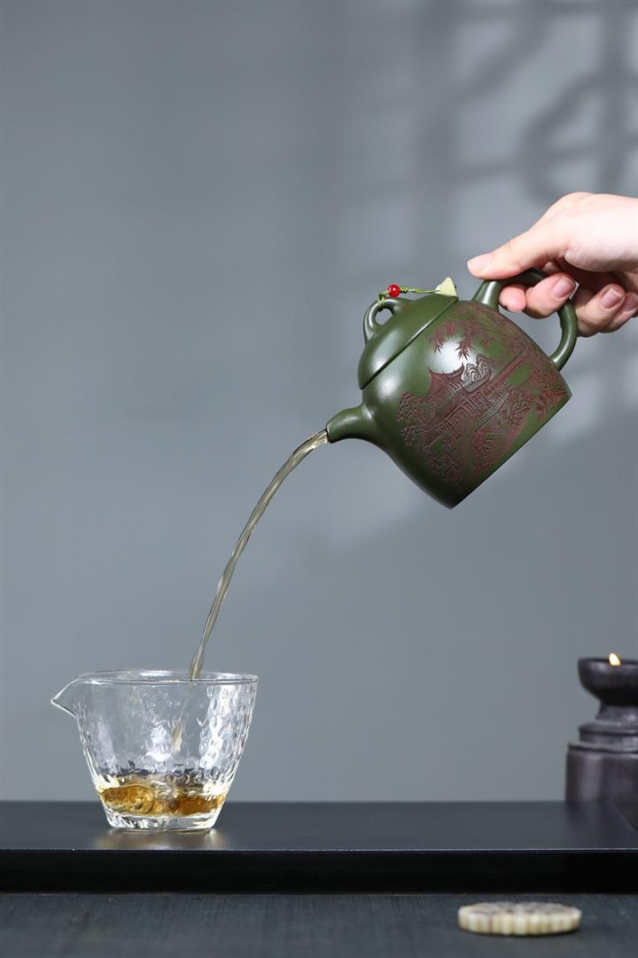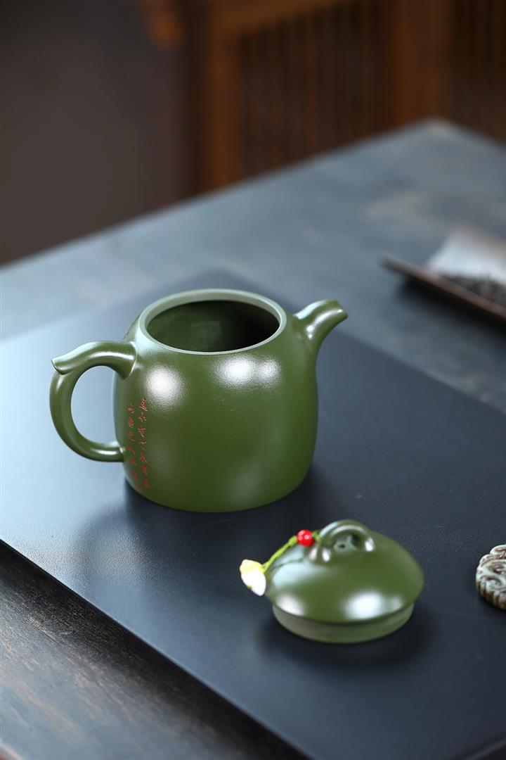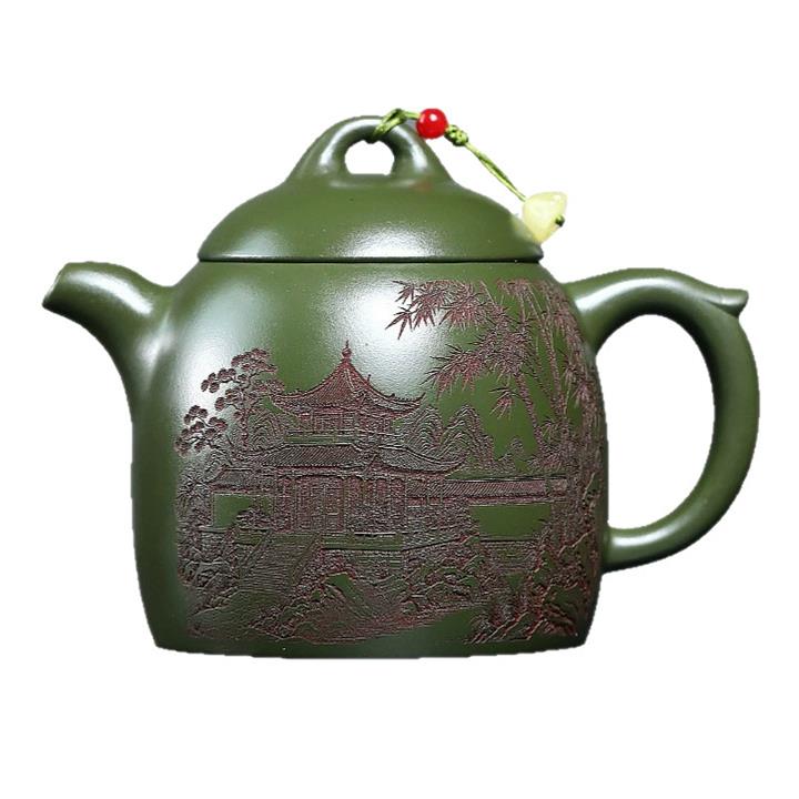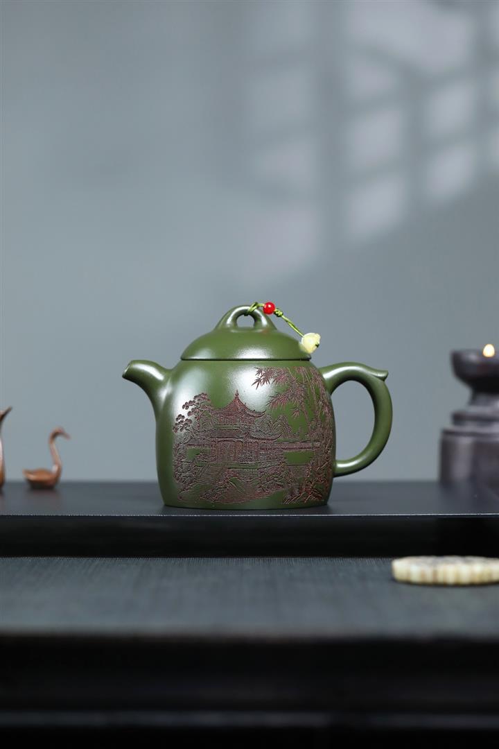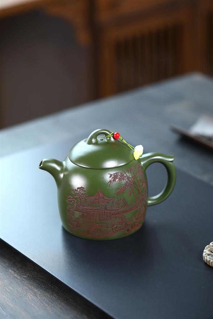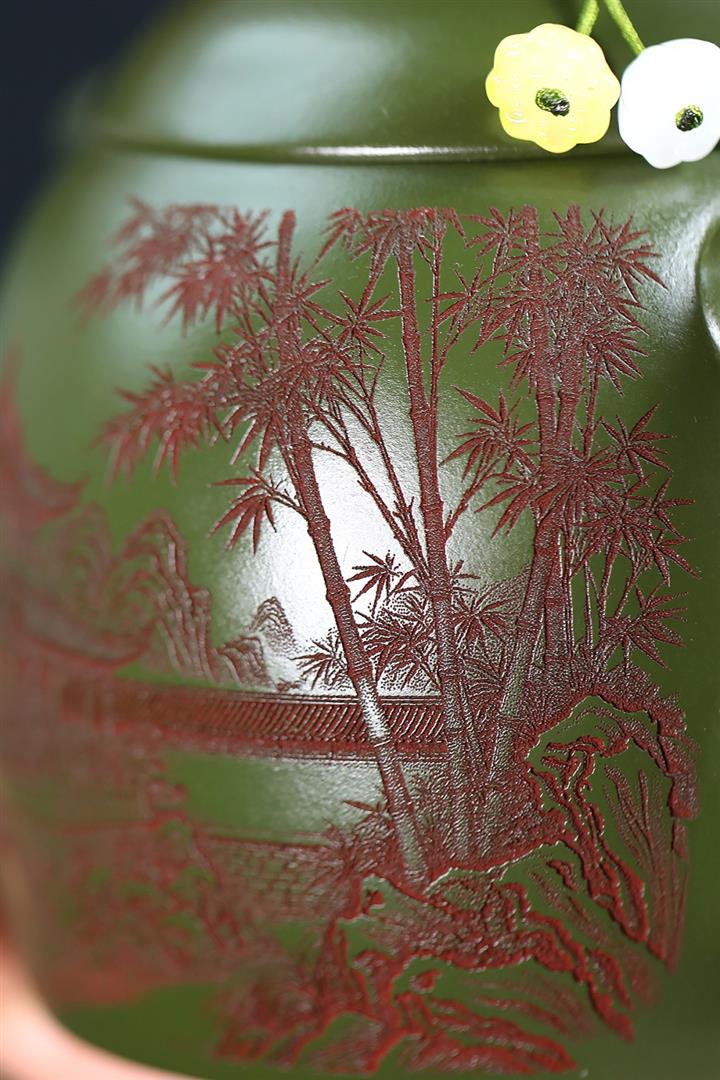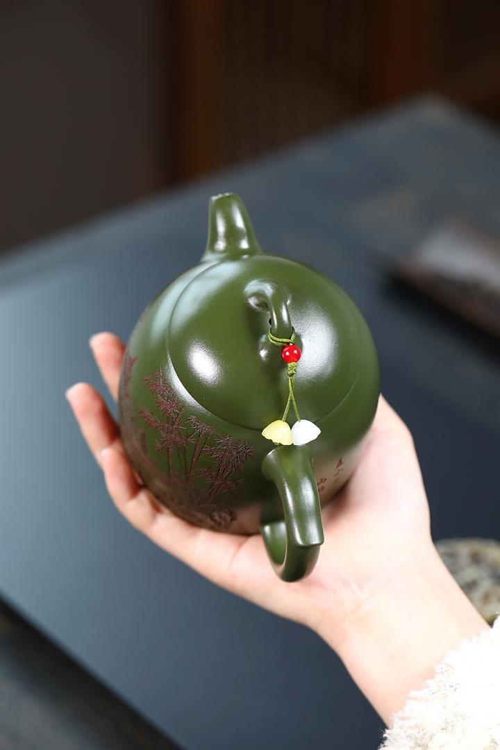 380cc原礦綠泥竹林松濤秦權泡茶壺POT9866