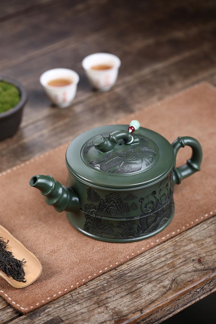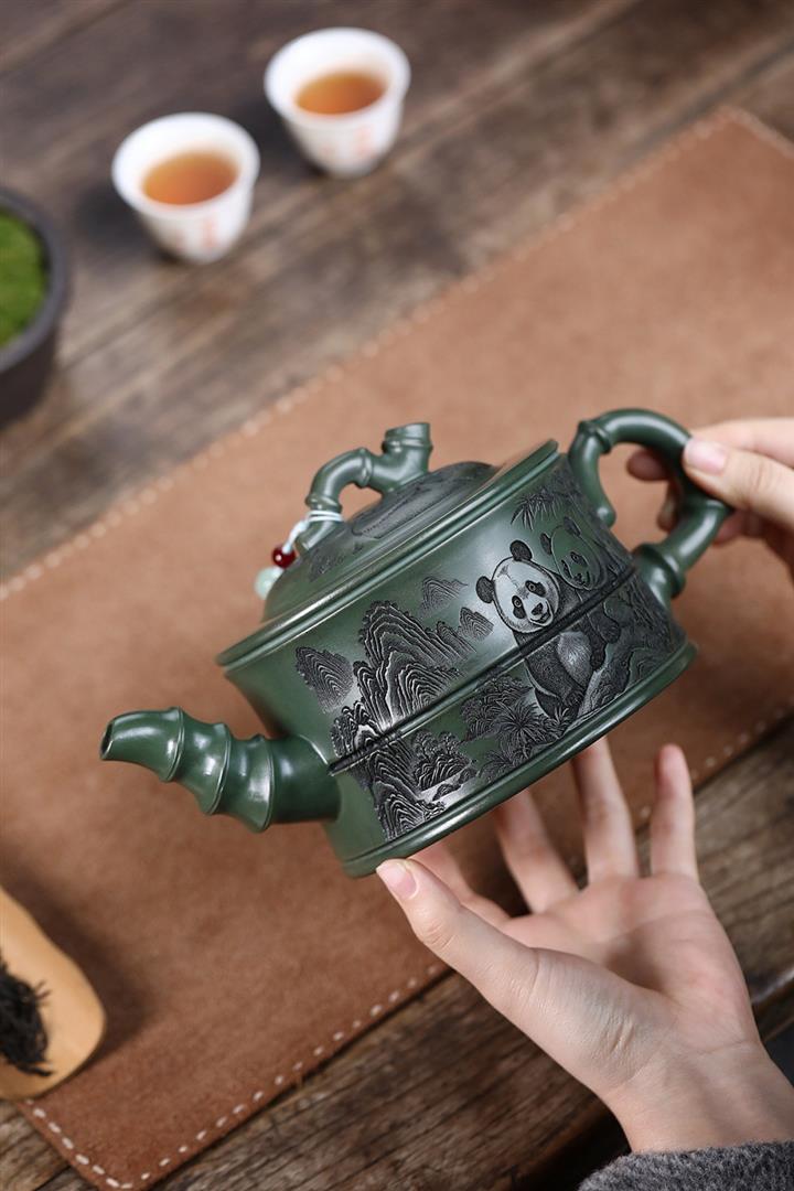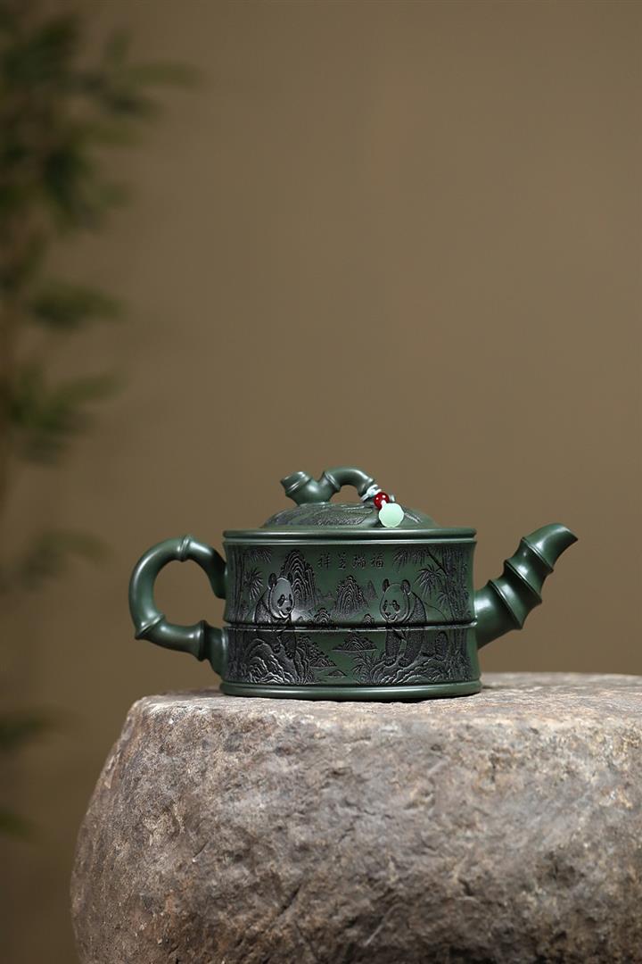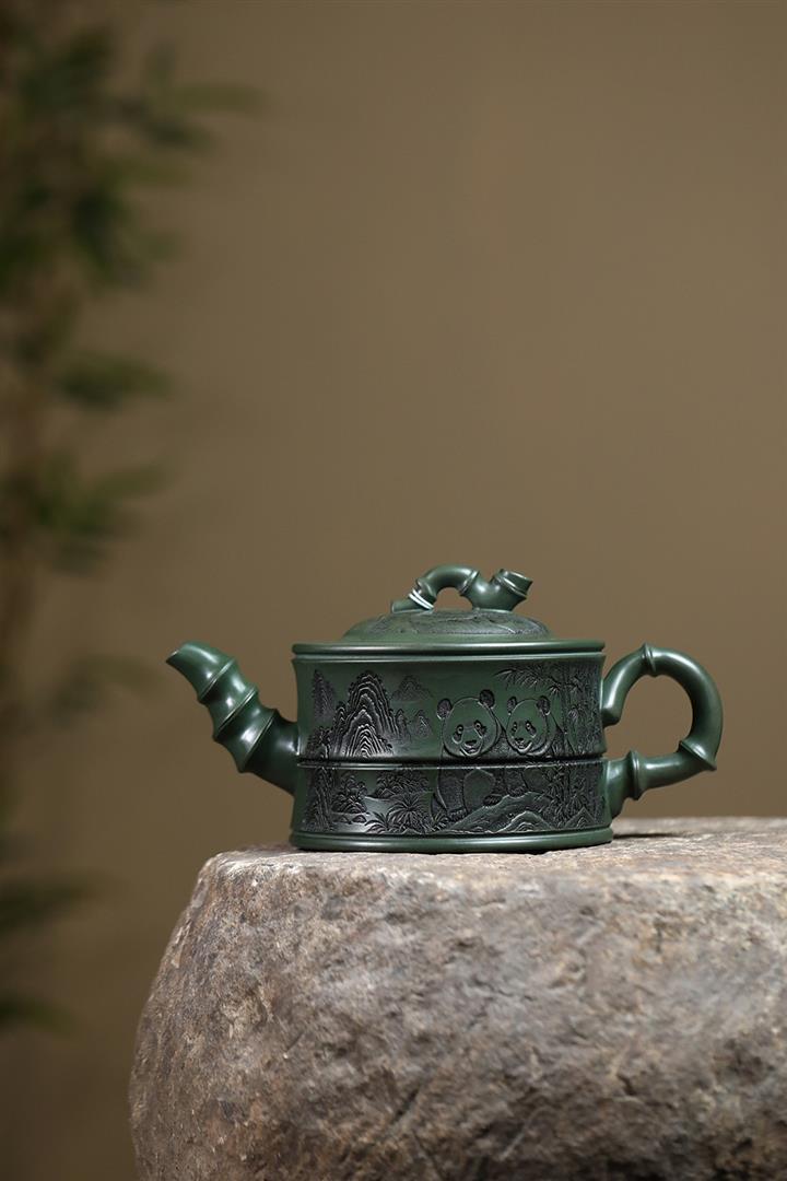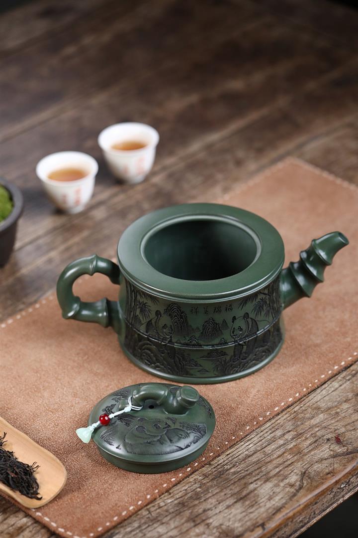 820cc原礦優質綠泥熊貓竹段泡茶壺POT9870