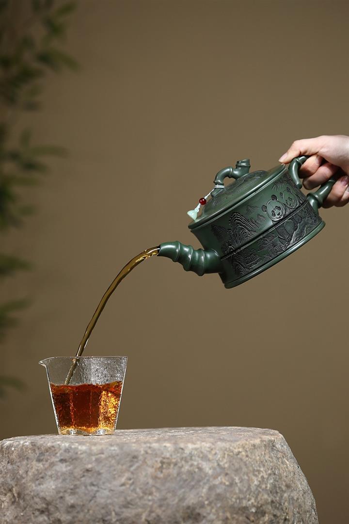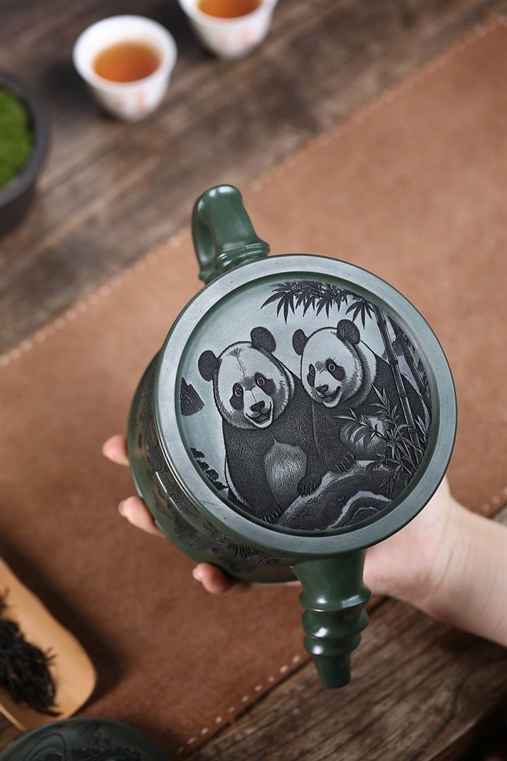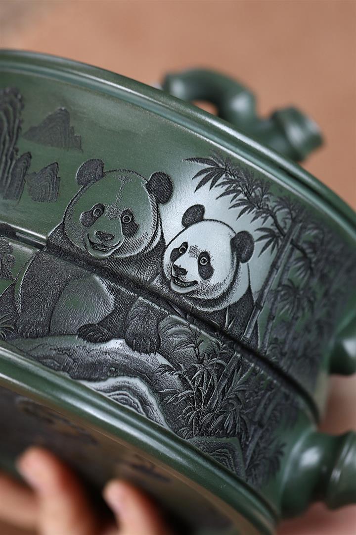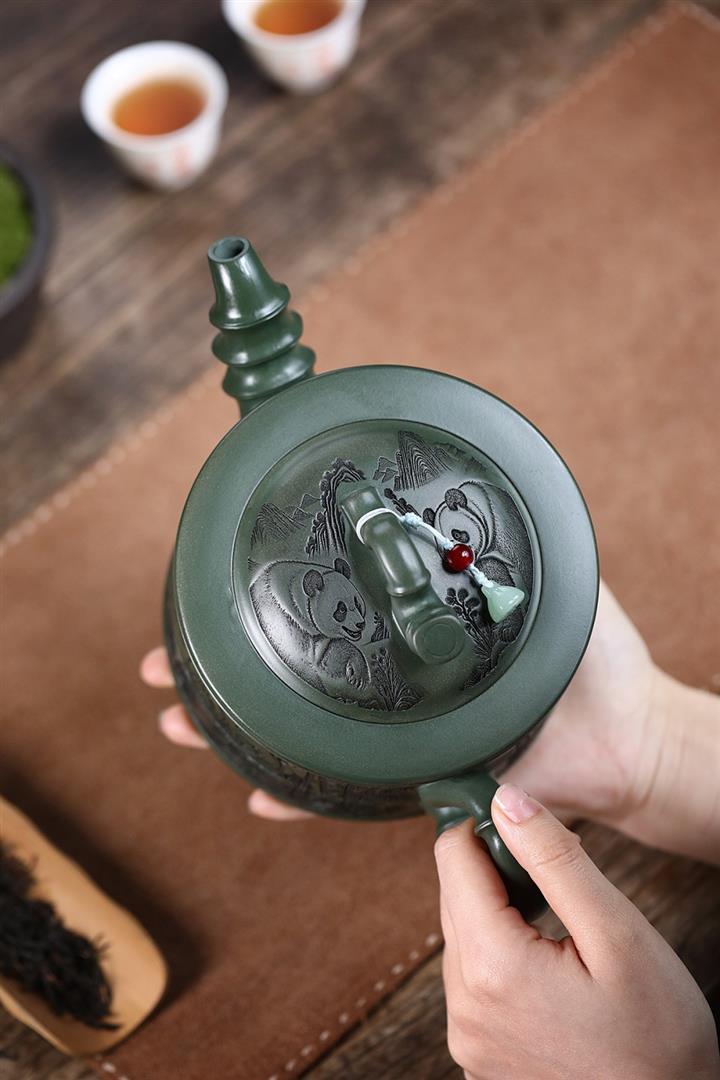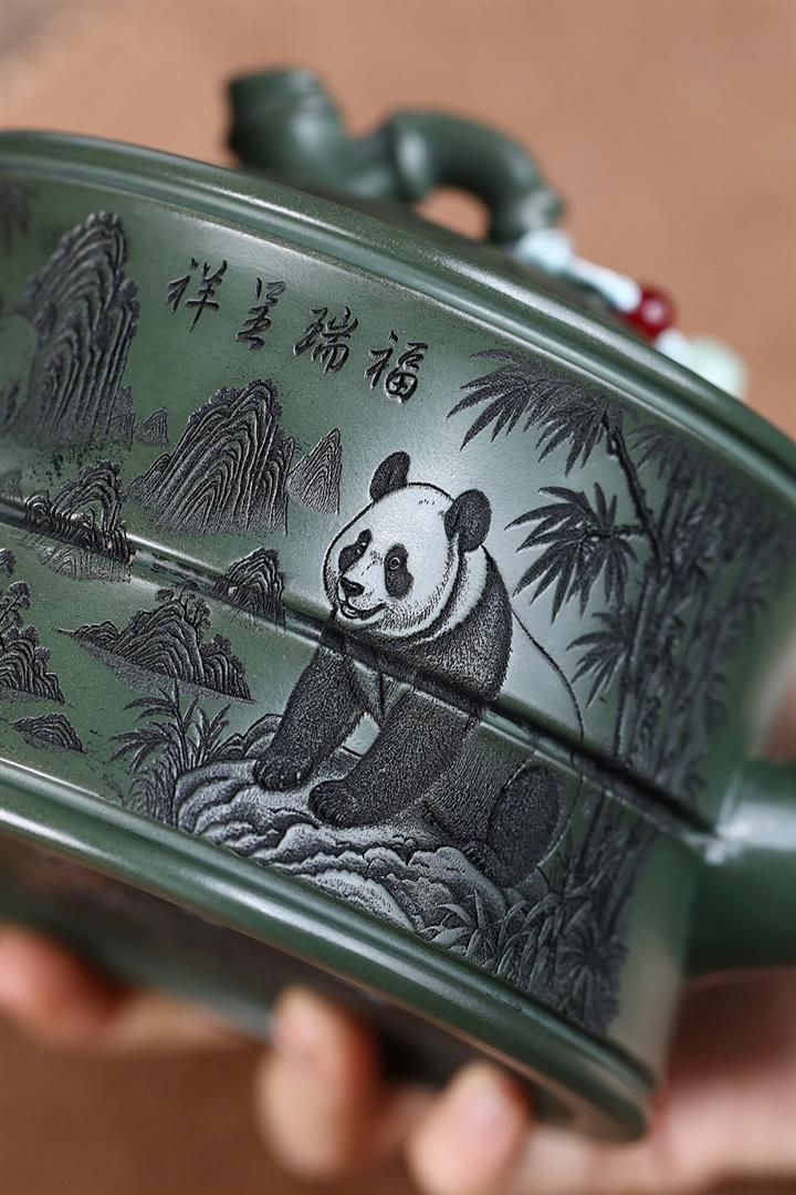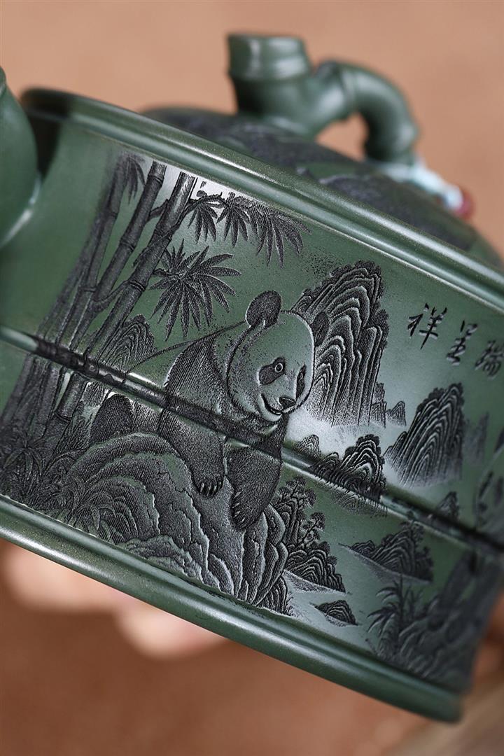 820cc原礦優質綠泥熊貓竹段泡茶壺POT9870