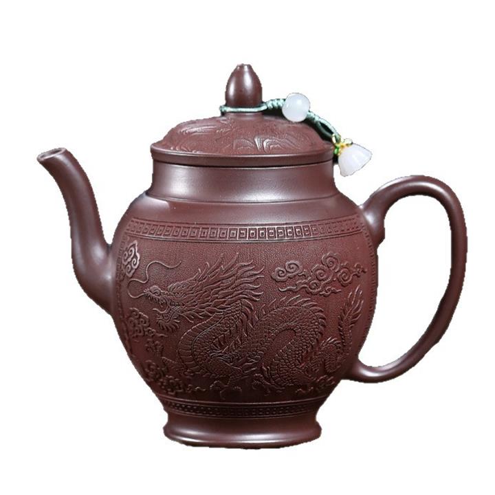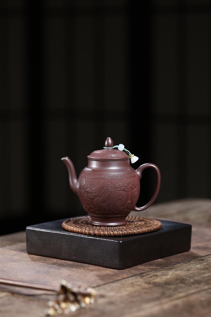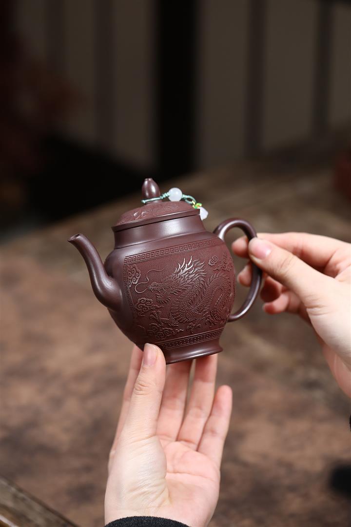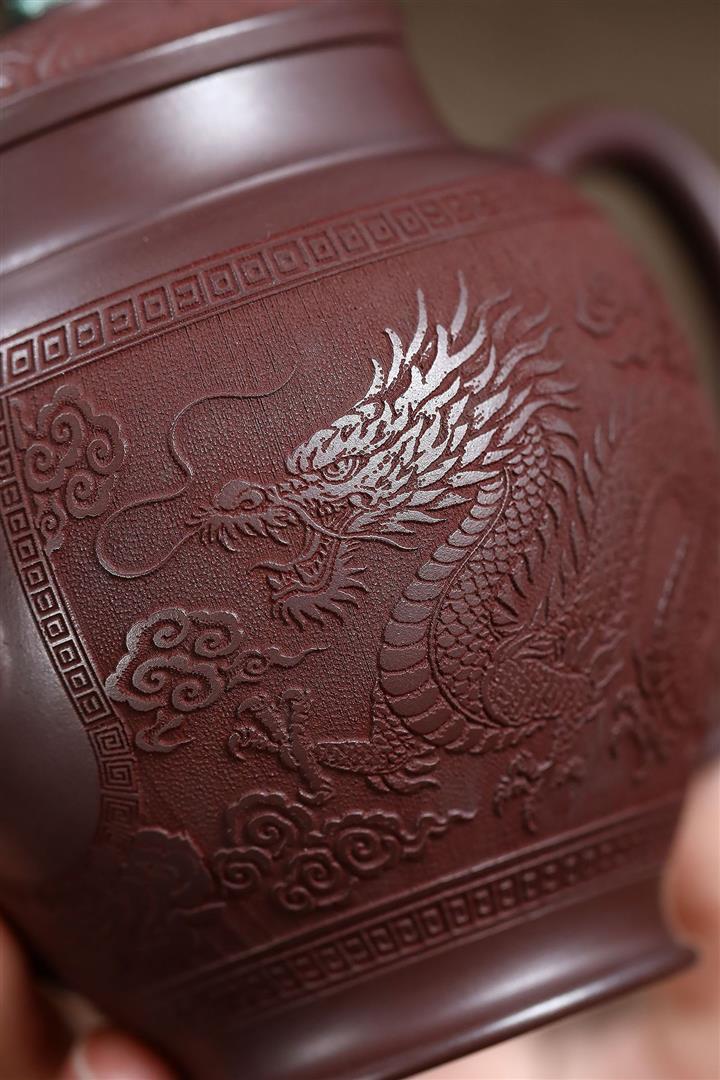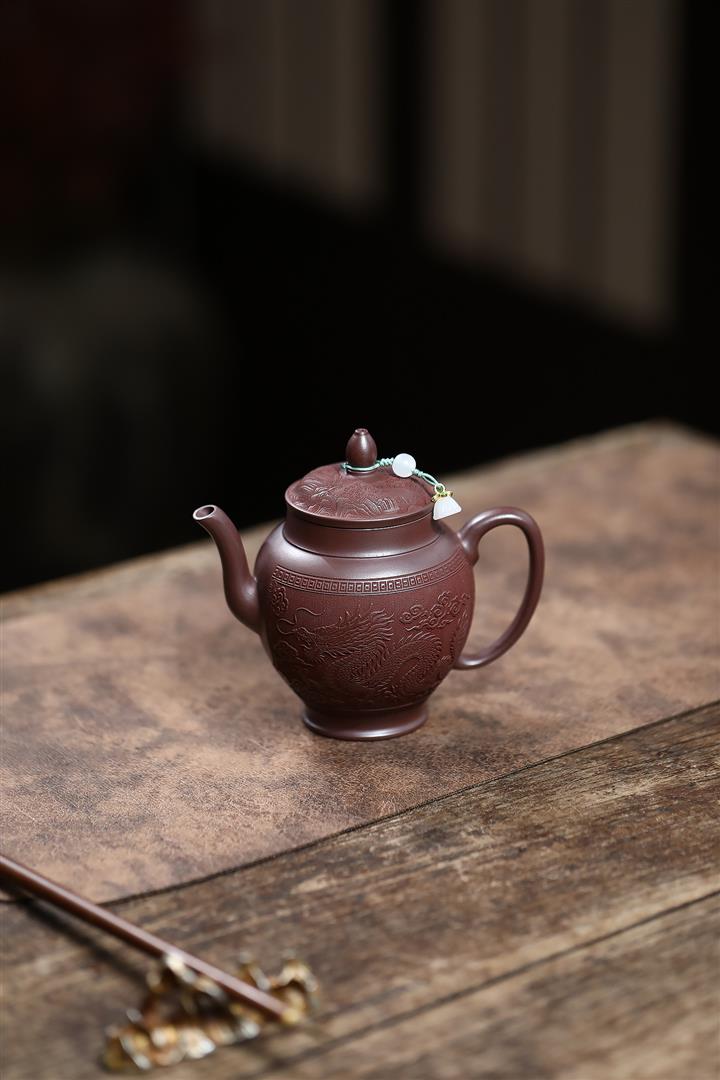 250cc原礦老紫泥浮雕祥龍戲珠茶壺POT8129