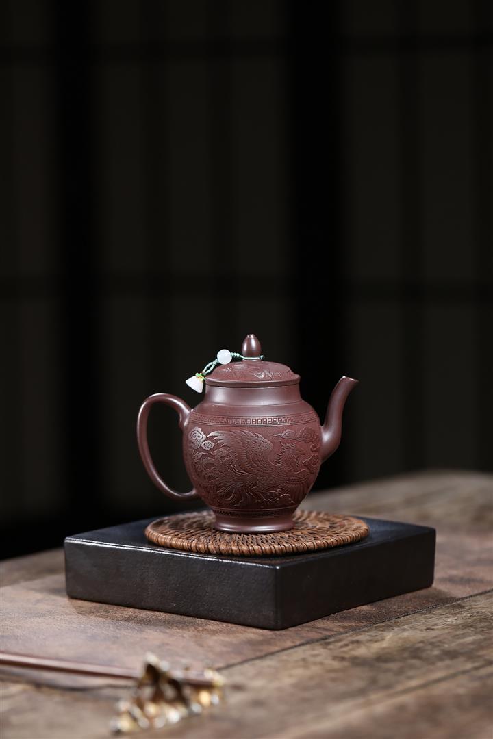 210cc原礦紫泥高宮燈龍鳳呈祥泡茶壺POT9873