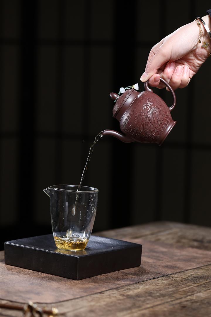 【泥料特點】砂土氣重,似淳實農民,日久使用,漸露鋒芒,養成變化,溫潤莊重。紫砂是壹種雙重氣孔結構的多孔性材質,氣孔微細,密度高。用紫砂壺沏茶,不失原味,且香不渙散,得茶之真香真味。紫砂使用越久,壺身色澤越發光亮照人,氣韻溫雅。紫砂壺長久使用器身會因撫摸擦拭,變得越發溫潤光澤。