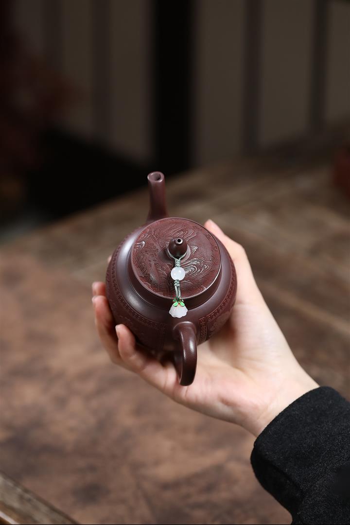 【作品介紹】此款壺形線條流暢,壺把,壺嘴,壺身壹氣呵成栩栩如生,是收藏把玩的好壺,泥料色澤古樸典雅,日久使用,漸露鋒芒,養成變化快,溫潤莊重,用其泡茶,使用的年代久,壺身就溫潤,泡出來的茶湯也就醇郁芳馨。