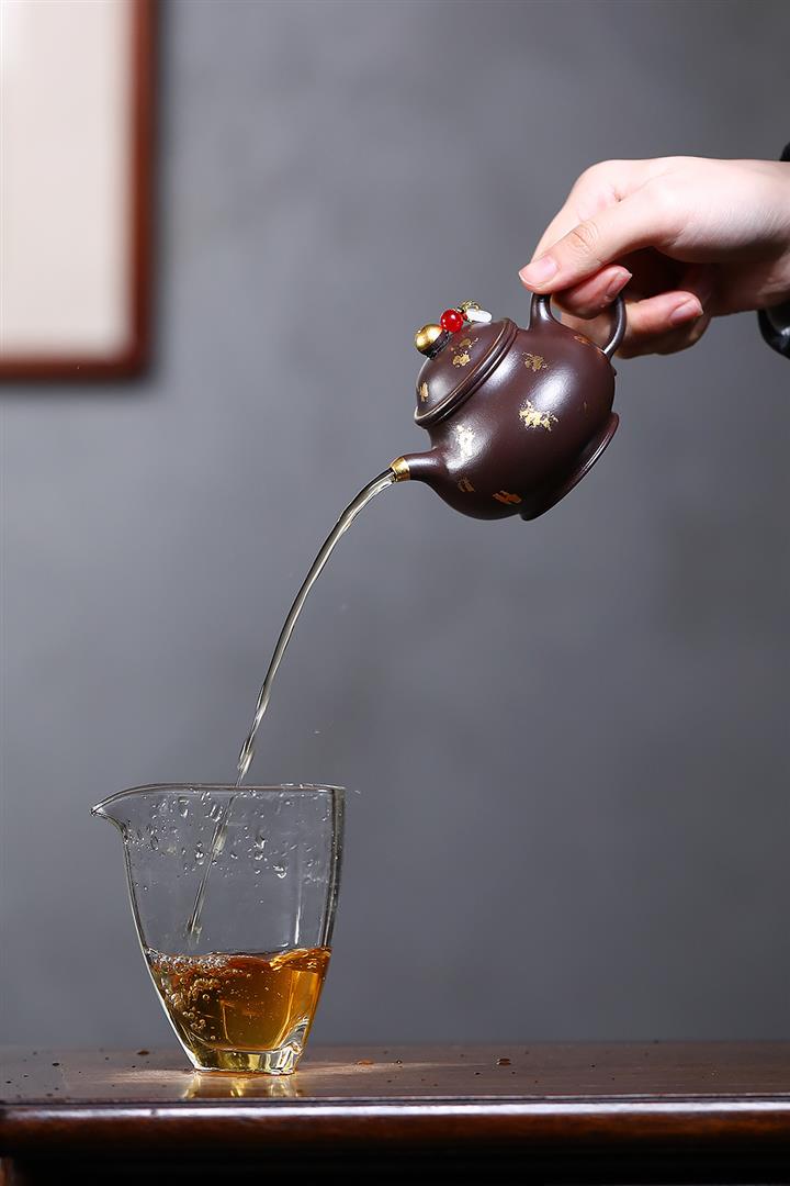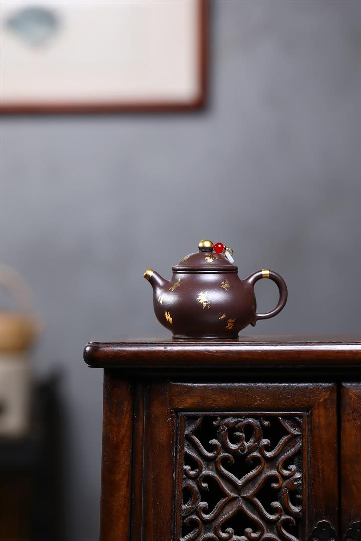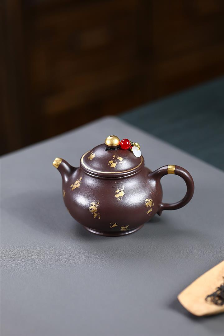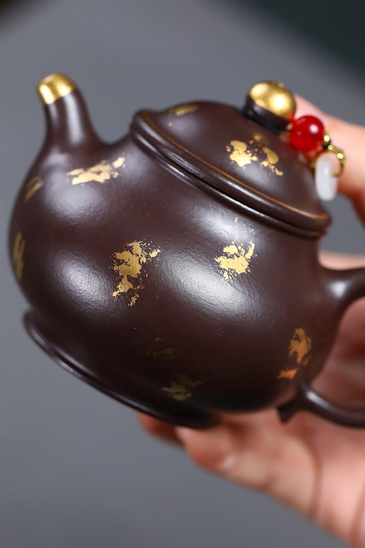 300cc原礦老紫泥灑金小潘壺泡茶壺POT9874