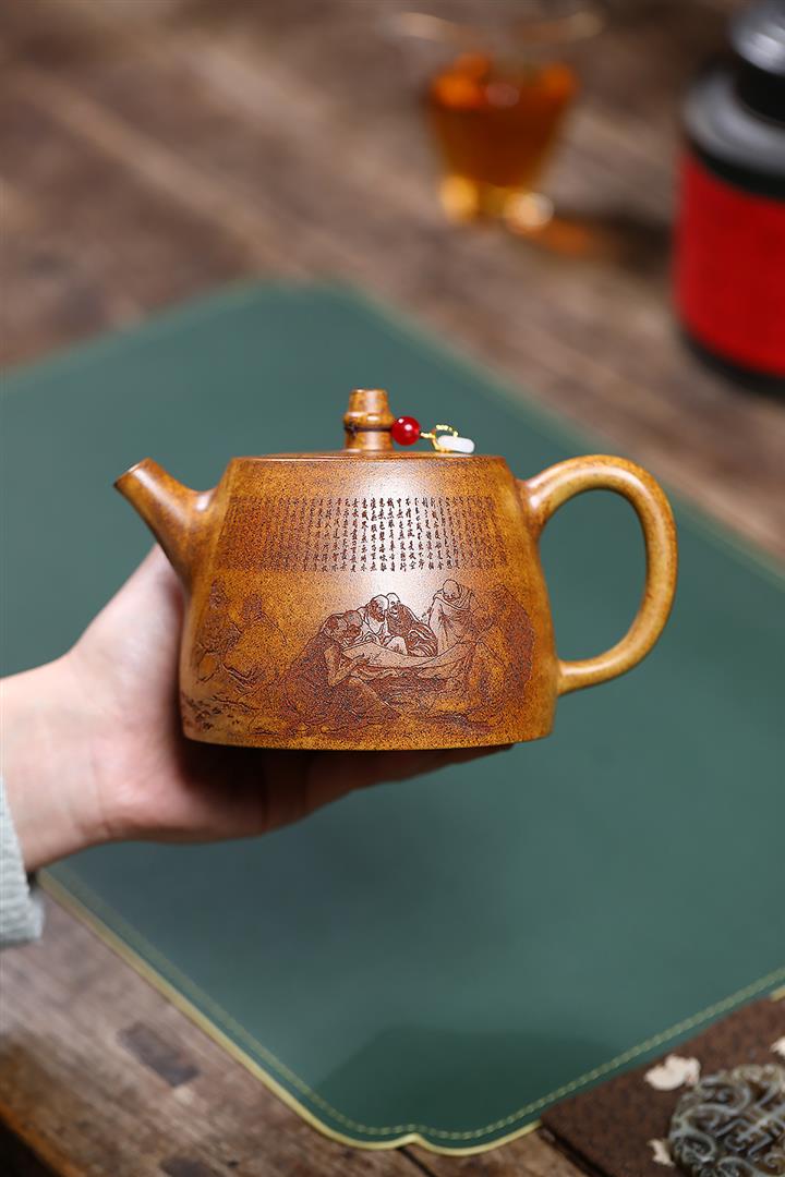 【作品介紹】此款壺形線條流暢,壺把,壺嘴,壺身壹氣呵成栩栩如生,是收藏把玩的好壺,泥料色澤古樸典雅,日久使用,漸露鋒芒,養成變化快,溫潤莊重,用其泡茶,使用的年代久,壺身就溫潤,泡出來的茶湯也就醇郁芳馨。