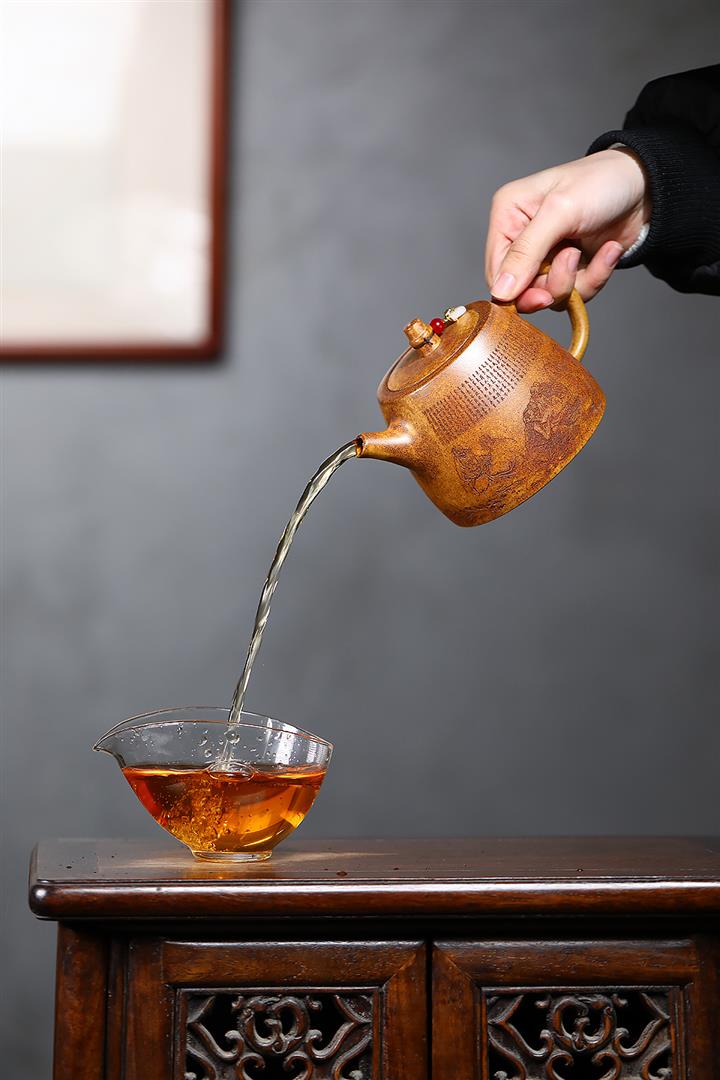 【泥料特點】砂土氣重,似淳實農民,日久使用,漸露鋒芒,養成變化,溫潤莊重。紫砂是壹種雙重氣孔結構的多孔性材質,氣孔微細,密度高。用紫砂壺沏茶,不失原味,且香不渙散,得茶之真香真味。紫砂使用越久,壺身色澤越發光亮照人,氣韻溫雅。紫砂壺長久使用器身會因撫摸擦拭,變得越發溫潤光澤。