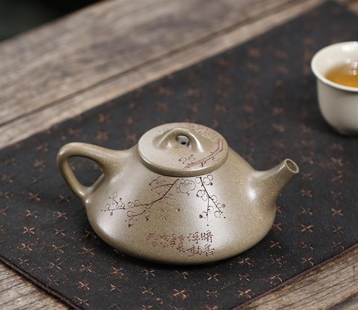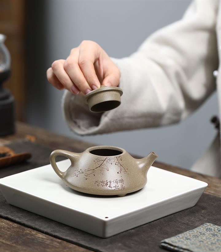 【泥料特點】砂土氣重,似淳實農民,日久使用,漸露鋒芒,養成變化,溫潤莊重。紫砂是壹種雙重氣孔結構的多孔性材質,氣孔微細,密度高。用紫砂壺沏茶,不失原味,且香不渙散,得茶之真香真味。紫砂使用越久,壺身色澤越發光亮照人,氣韻溫雅。紫砂壺長久使用器身會因撫摸擦拭,變得越發溫潤光澤。