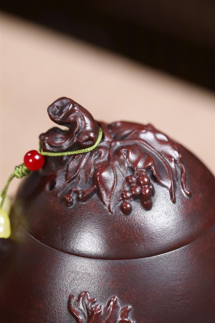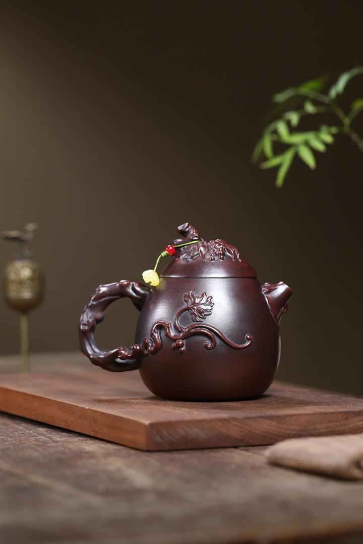 【泥料特點】砂土氣重,似淳實農民,日久使用,漸露鋒芒,養成變化,溫潤莊重。紫砂是壹種雙重氣孔結構的多孔性材質,氣孔微細,密度高。用紫砂壺沏茶,不失原味,且香不渙散,得茶之真香真味。紫砂使用越久,壺身色澤越發光亮照人,氣韻溫雅。紫砂壺長久使用器身會因撫摸擦拭,變得越發溫潤光澤。