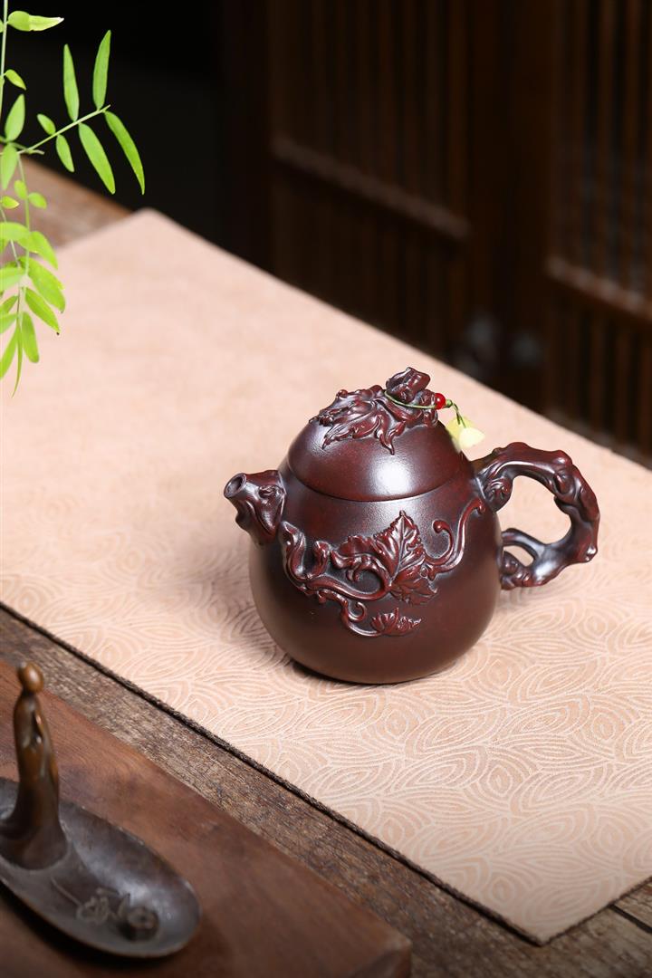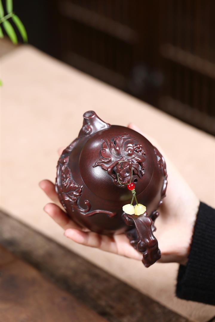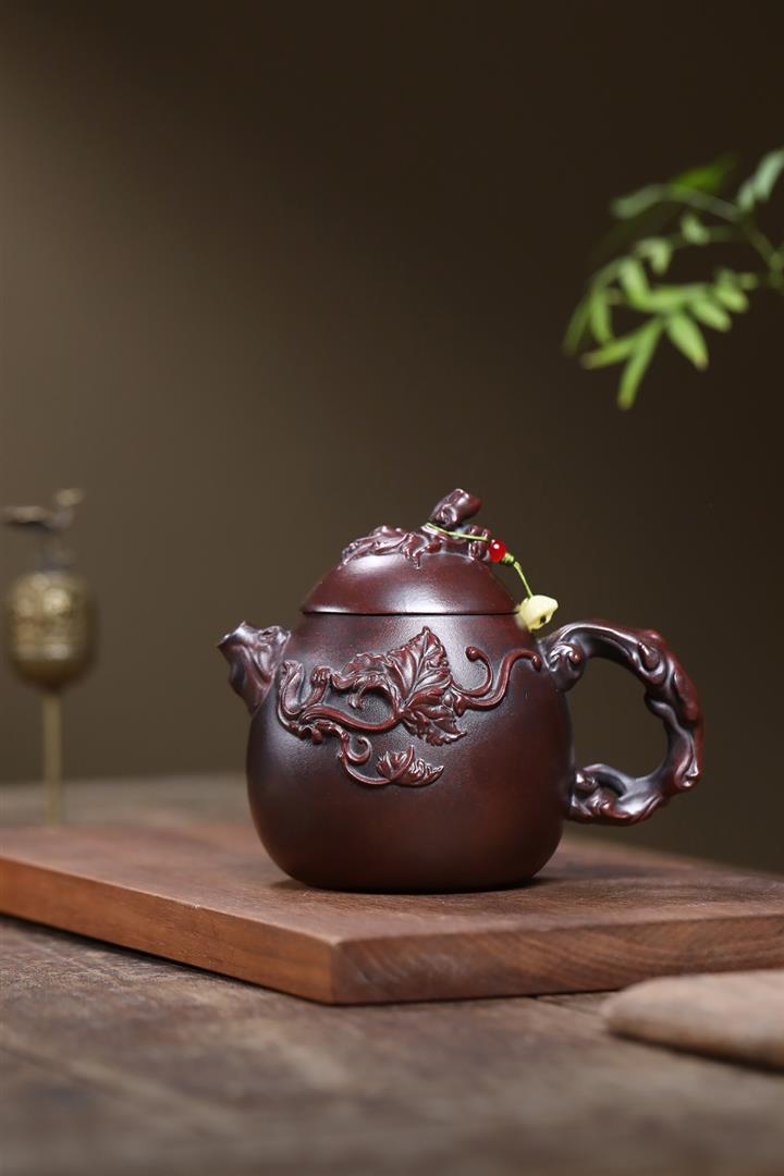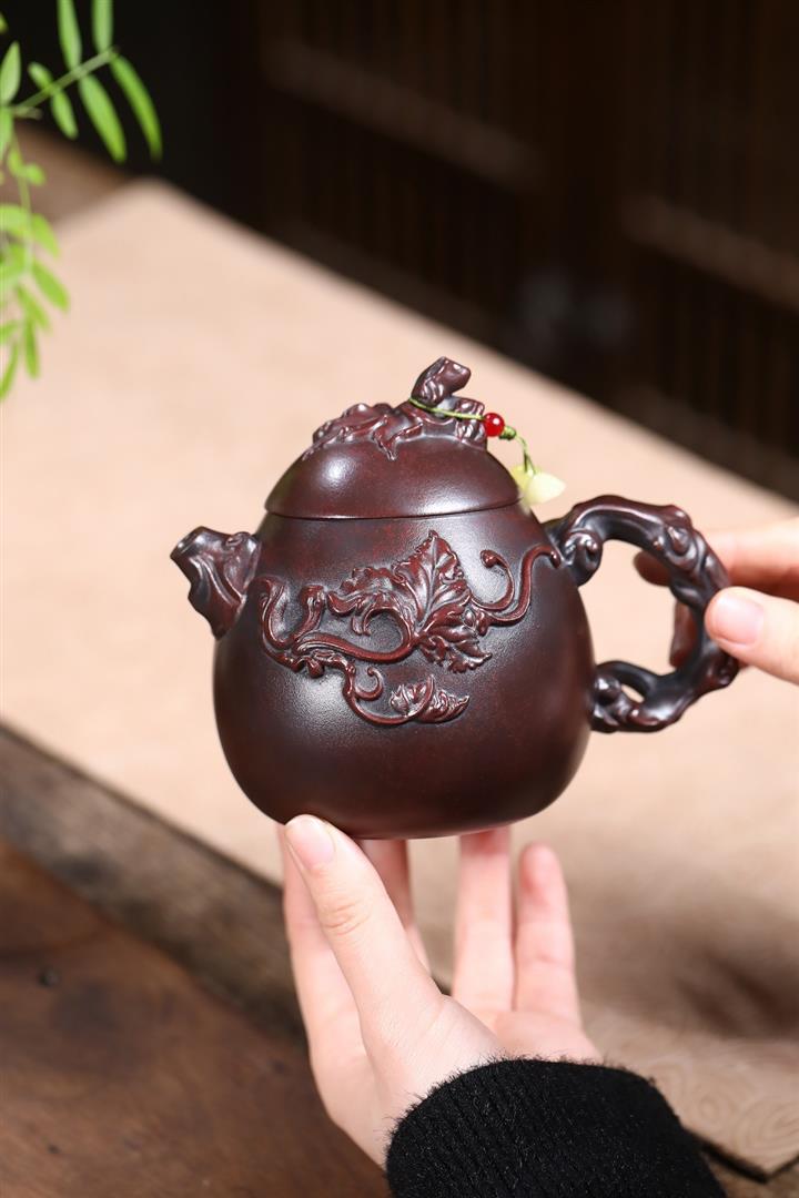 【作品介紹】此款壺形線條流暢,壺把,壺嘴,壺身壹氣呵成栩栩如生,是收藏把玩的好壺,泥料色澤古樸典雅,日久使用,漸露鋒芒,養成變化快,溫潤莊重,用其泡茶,使用的年代久,壺身就溫潤,泡出來的茶湯也就醇郁芳馨。