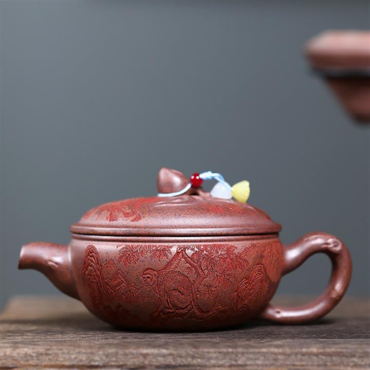 260cc原礦古烏泥滿刻竹影熊韻茶壺POT8181
