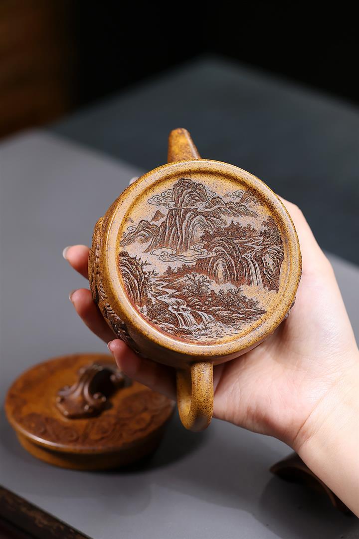 【作品介紹】此款壺形線條流暢,壺把,壺嘴,壺身壹氣呵成栩栩如生,是收藏把玩的好壺,泥料色澤古樸典雅,日久使用,漸露鋒芒,養成變化快,溫潤莊重,用其泡茶,使用的年代久,壺身就溫潤,泡出來的茶湯也就醇郁芳馨。